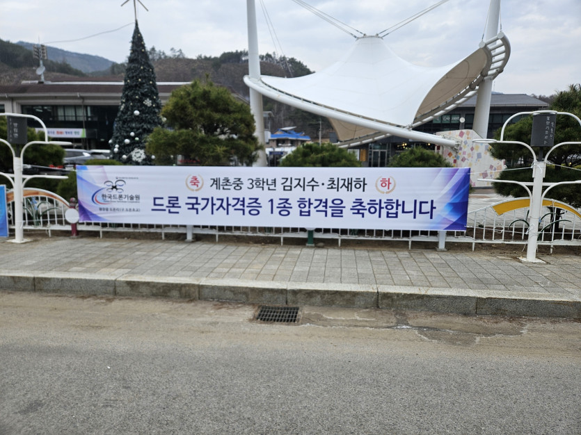 계촌중학교 3학년 드론1종조종자 자격증 취득 페이지 정보 작성자 관리자 쪽지보내기 메일보내기 아이디로 검색 최근게시물 쪽지보내기 메일보내기 아이디로 검색 최근게시물 댓글 0건 조회 5회 작성일 2026-03-31 16:17 목록 본문 평창군 방림면 계촌중학교 3학년 김지수, 최재하군이 3월 실시된 드론 1종조종자 실기시험에 합격하였습니다. 목록 댓글목록 댓글목록 등록된 댓글이 없습니다.